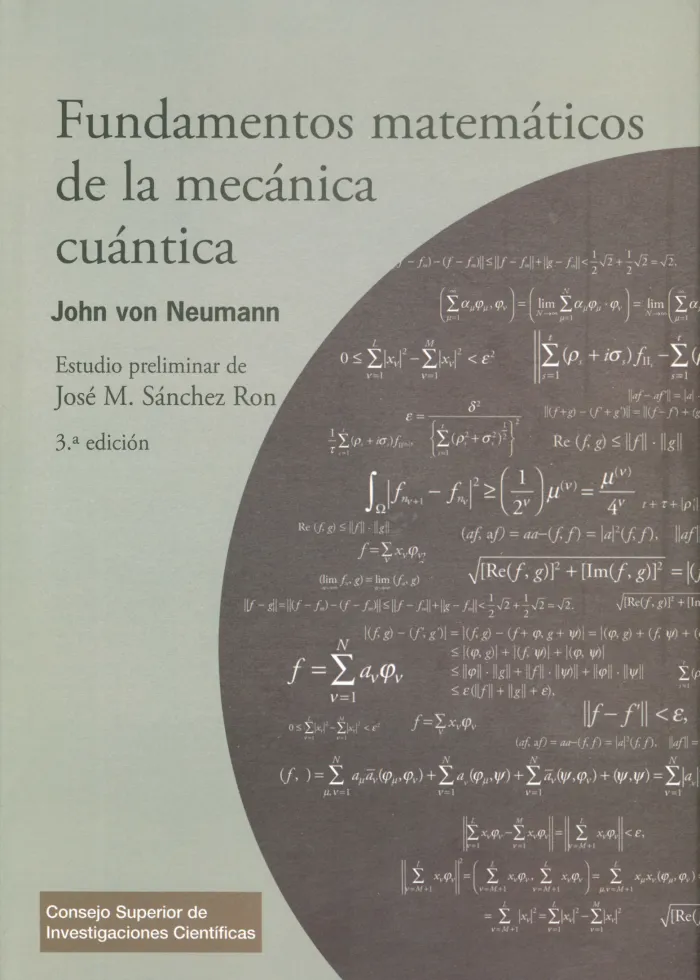 Publicado en alemán en 1932, "Fundamentos matemáticos de la mecánica cuántica" (1932), del polivalente matemático húngaro John von Neumann (1903-1957), uno de los cerebros más poderosos del siglo XX, contiene la presentación matemáticas más acabada y rigurosa de la mecánica cuántica, desarrollada en 1925-1926 por Werner Heisenberg, Erwing Schrödinger y Paul Dirac. Es todo un clásico de la literatura científica. Pero, al contrario de lo que su título puede sugerir, no es solo un magnífico tratado de física matemática, con aportaciones seminales a la teoría de los espacios de Hilbert, sino que también constituye una de las contribuciones más lúcidas al problema del significado físico de la mecánica cuántica, en particular al problema de la medida. Cuestiones como el colapso de la función de ondas, la posibilidad de una versión causal de la teoría cuántica (variables ocultas) o el papel del observador fueron analizadas en estas páginas por John von Neumann con una maestría difícilmente superable, independientemente de que en algún caso (como el de las variables ocultas) sus conclusiones fuesen matizadas más de dos décadas después.