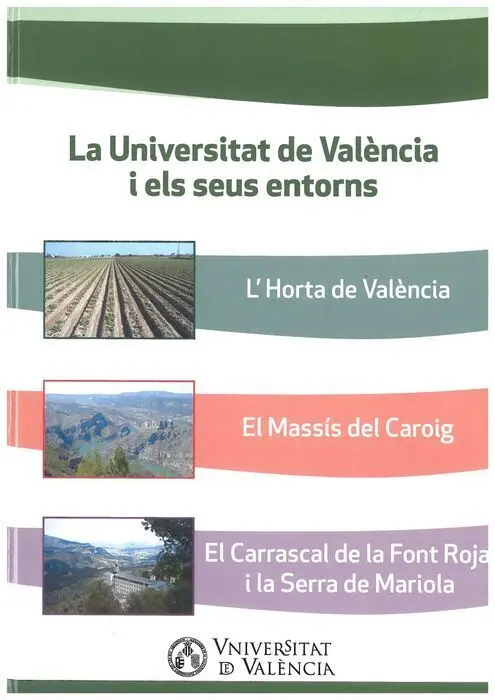Este volumen comprende los catálogos de tres exposiciones realizadas por la Universidad. Se trata de espacios de referencia de la Comunidad Valenciana donde el patrimonio, el paisaje y la diversidad son comunes. Se ha contado con la participación de un centenar de especialistas en varias disciplinas, como la biología, la geología, la historia, la arqueología, el derecho, la economía, el patrimonio cultural, la geografía o la didáctica, entre otras.De esa manera, tres ambientes diferentes, como es el plan litoral (l'Horta de Valencia), el interior (el Macizo del Caroig y sus comarcas limítrofes) y el montañoso (Parques Naturales de la Font Roja y la Sierra de Mariola), son abordados desde una perspectiva multidisciplinaria y plural, por casi un centenar de estudiosos de estos territorios. La publicación recoge, así, reflexiones en torno a las ciencias naturales, sociales y humanas.