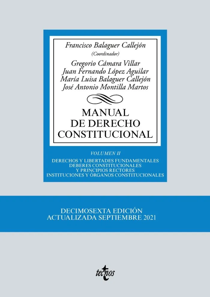 Este Manual de Derecho Constitucional va dirigido a los estudiantes de Derecho de Facultades y Escuelas Universitarias en las que se imparten asignaturas de Derecho Constitucional y de introducción a nuestro sistema constitucional y a nuestro ordenamiento jurídico. Sus autores son profesores de las Universidades de Granada, Málaga y Las Palmas, con un alto grado de especialización en los temas de cuya redacción se han encargado. En este segundo volumen se analiza el sistema de derechos y libertades así como las instituciones y los órganos constitucionales.