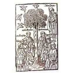 Los personajes que aparecen en esta xilografía realizada por el impresor Lope de Roca Alemany para la obra "Lo procés de les Olives" en ella aparecen representados varios de los componentes de alguno de los círculos literarios que existían en la Valencia ...