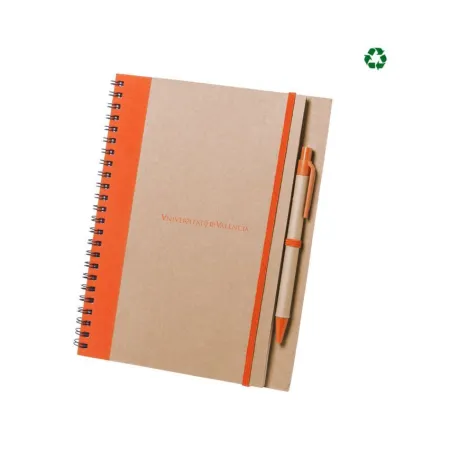 Bloc + Boli Cartón Reciclado A5 "Universitat de València" 21 X 16,5 cm - Naranja