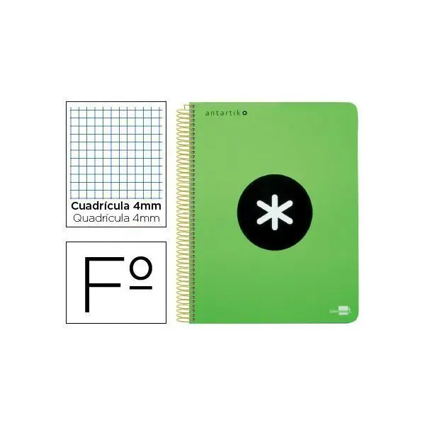 Bloc Espiral Liderpapel Folio Cuadros 4Mm 80 Hojas Tapa Extrafuerte Color Verde