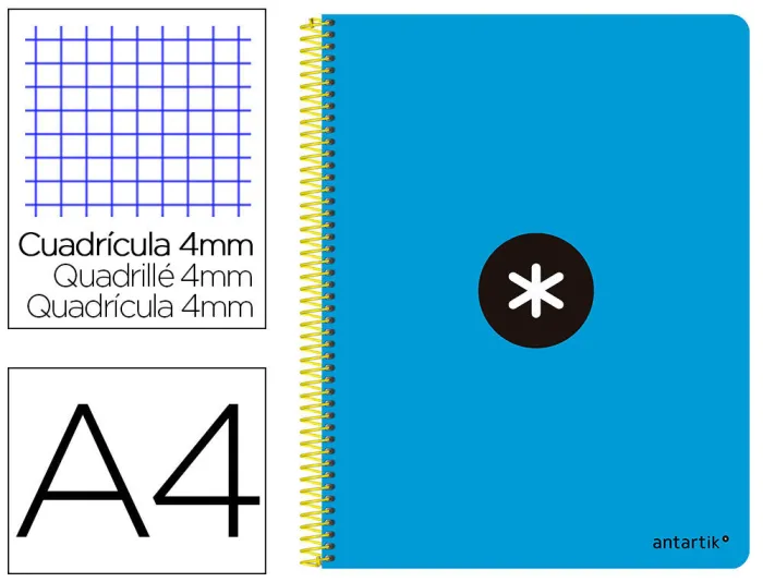 Bloc Espiral Liderpapel Folio Cuadros 4Mm 80 Hojas Tapa Polipropileno Color Azul