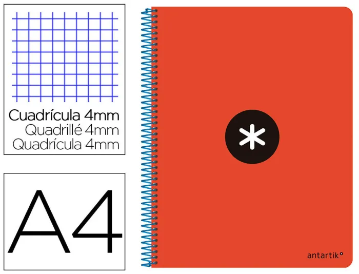 Bloc Espiral Liderpapel Folio Cuadros 4Mm 80 Hojas Tapa Polipropileno Color Rojo