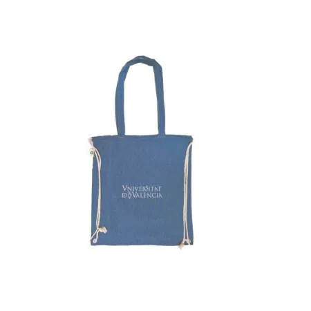 Bolsa-Mochila Denim "Universitat Valencia" Cordones Algodón Reciclado 38 X 42 Cms- Azul