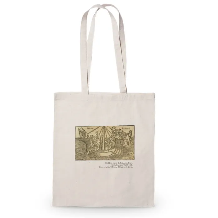 Bolsa Algodón con ilustración Nau dels BojosRef:Stultifera navis, de Sebastian Brant. París, Georgius Wolff, 1498.Universitat de València. Biblioteca Històrica ...