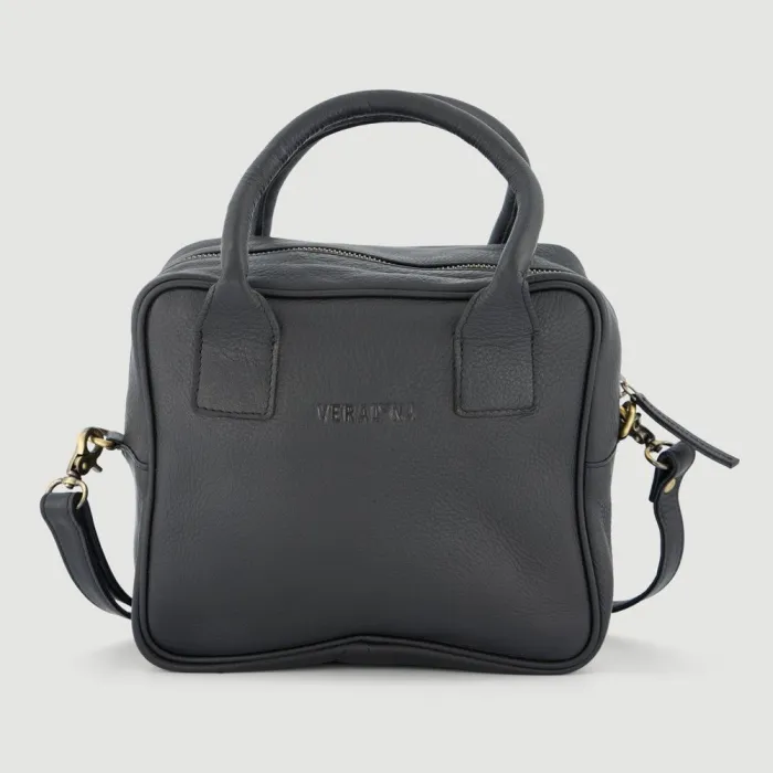 Bolso hecho a mano de piel modelo rankala color negro Veraluna. Hecho a mano en India por EMA. Comercio Justo.