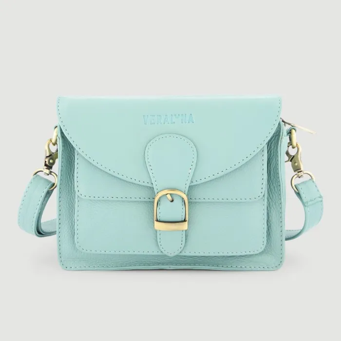 Bolso hecho a mano de piel modelo tala color turmalina Veraluna. Hecho a mano en India por EMA. Comercio Justo.