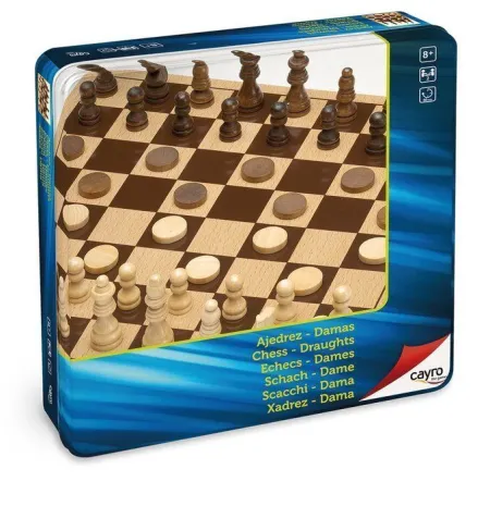 Juego de Mesa Ajedrez Damas de Madera Metal Box (27X27 Cm)