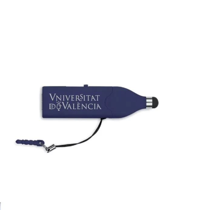 Puntero láser blanco con conexión USB y de suave acabado. Especialmente diseñado para PowerPoint y Keynote, incorpora pulsadores laterales, con botones de avance, pausa y retroceso. Con logo "Universidad de Valencia". Alimentación a pilas: 1xAAA incluida. ...