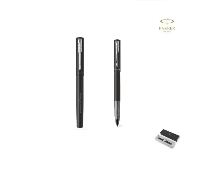 Logotipo Universitat de València grabado en láserRoller Parker Vector XL, fabricado en acero inox pulido, resaltado con un adorno cromado y el inconfundible clip con la forma icónica en punta de flecha de la marca en la capucha. En tinta negra y presentado en estuche individual negro con logotipo Parker.Escritura limpia y homogénea, sin saltos, y de gran gran fluidez e intensid...