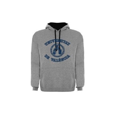 Dessuadora amb caputxa logo tipus "campus" de la Universitat de València. Consulta "més *Info" per a talles i colors. Certificat *Oekotex 100