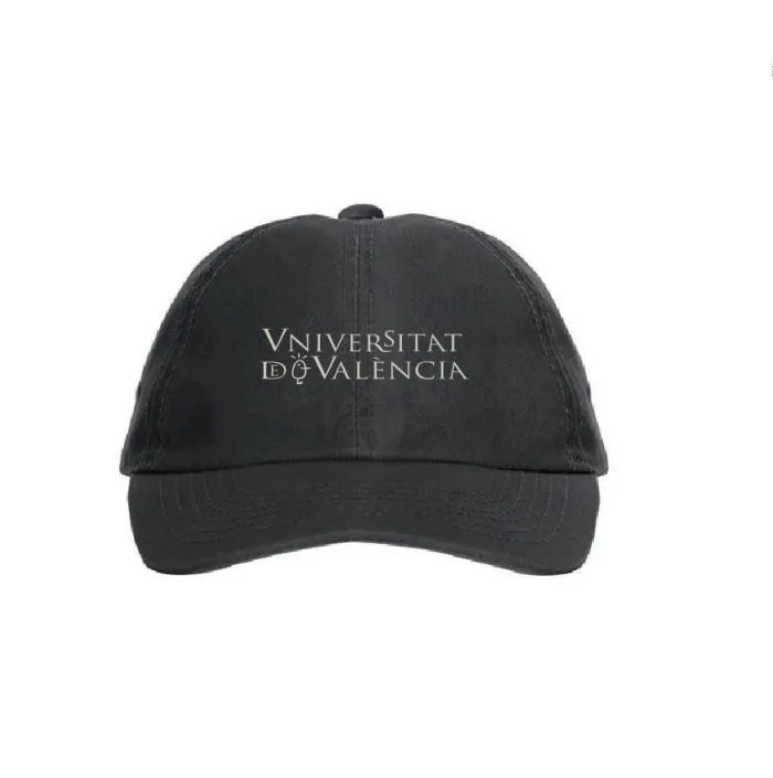 Logotipo Universitat de València bordadoEtiqueta UVGorra de estilo casual de 6 paneles. Parte interior de la visera y cinta antisudor a contraste. Dos ojales metálicos en cada lateral.Cierre ajustable metálico en la parte trasera.100% algodón, 260 g/m ...
