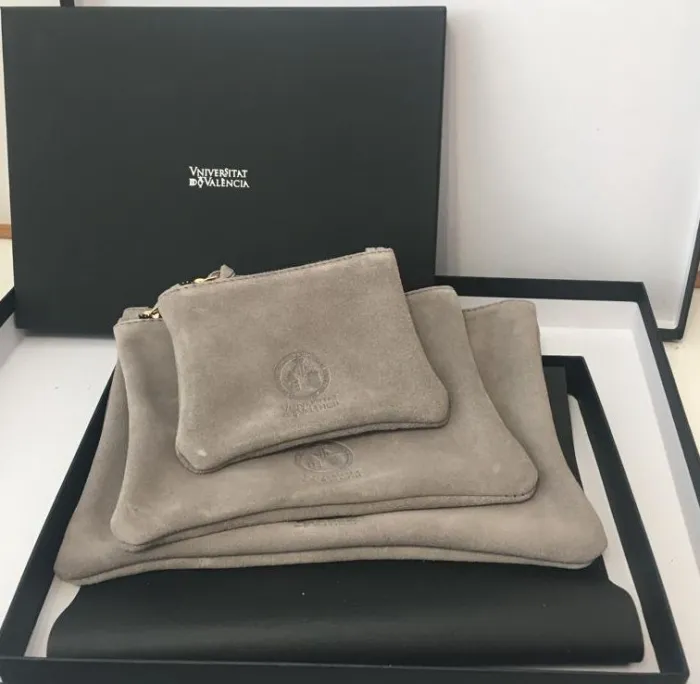 Juego bolsas serraje con el emblema de la Universitat de València
