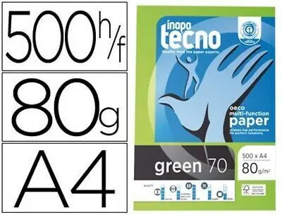 Papel Fotocopiadora Tecnogreen 100% Reciclado A4 80 Grs Pack 500 uds