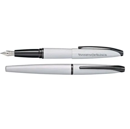 Logotipo Universitat de València y estuche PremiumULTRA ELEGANTE. ULTRA MODERNA.ATX ofrece un estilo vanguardista con un distintivo clip integrado y una silueta estilizada y afilada. Pluma Estilográfica Cross ATX Cromo Cepillado y grabado texturizado en Punta de Diamante. SKU 886-4 ...