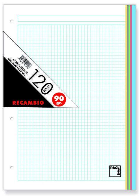Vista previa: RECAMBIO A4 120H 90GR CUADRO 5MM MARGEN COLORES